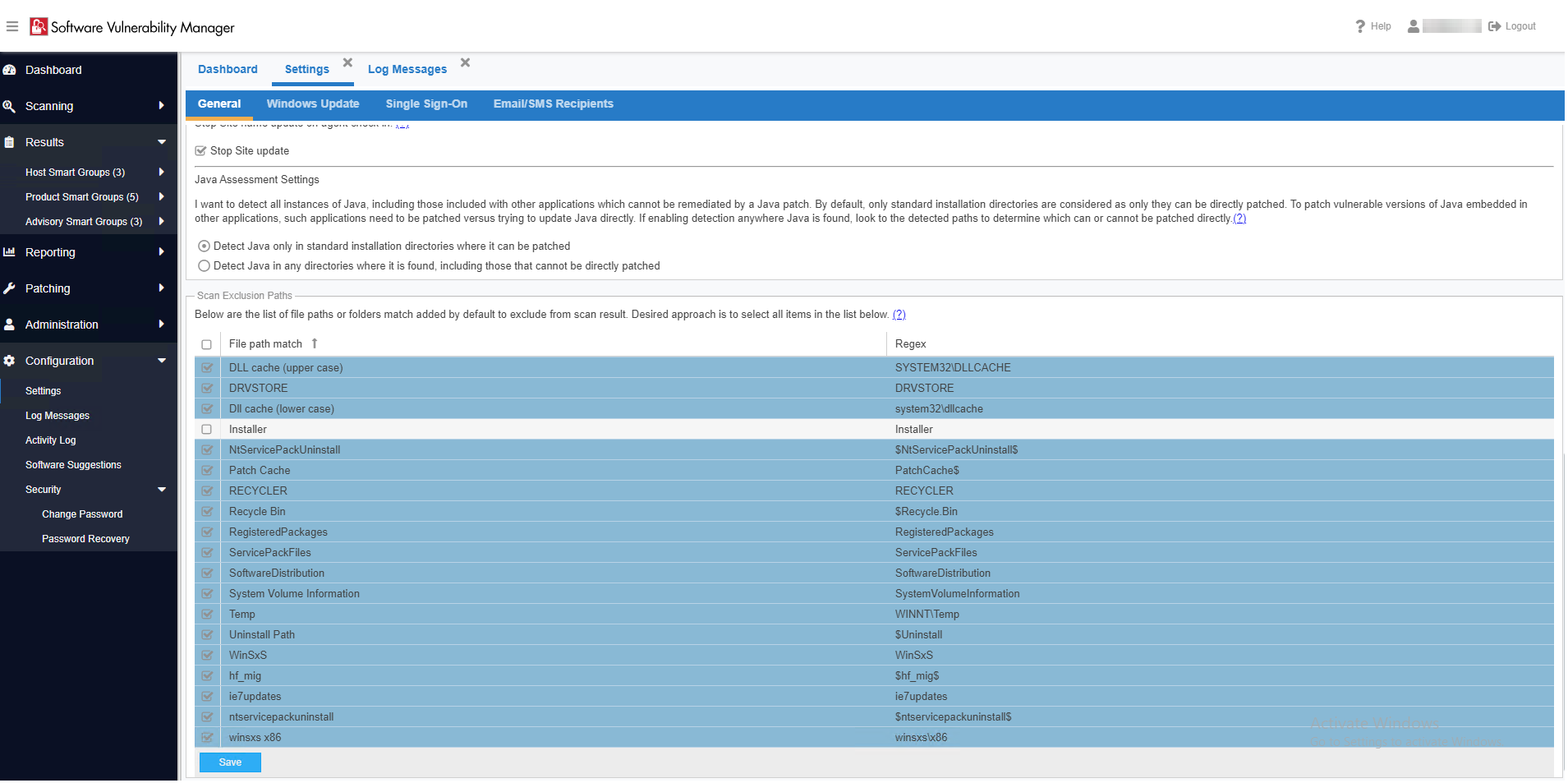 The excluded paths can be viewed in the Configuration > Activity Log grid by selecting Search type as Exclusion Path List .