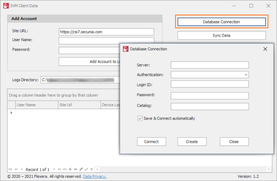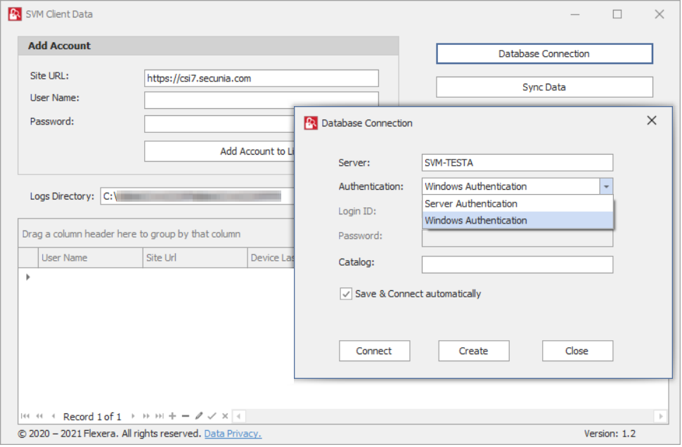 - Double click on the shortcut created on your desktop, Flexera SVM Client Data windows pane appears.
