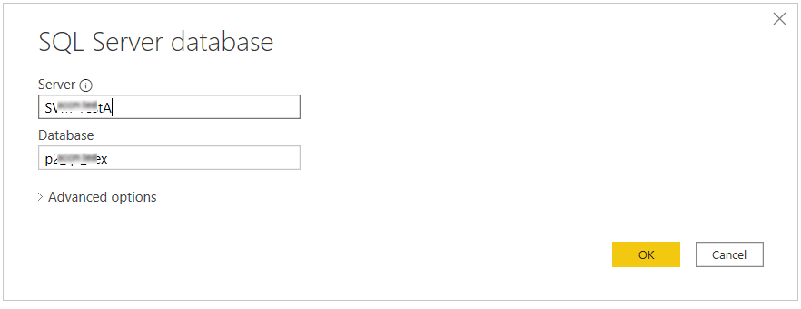 - In the Data source settings , select Data sources in current file by clicking on the radio button, and click the Change Sources button. The SQL Server database dialog box appears.