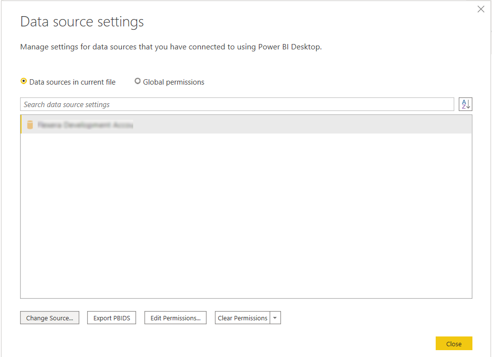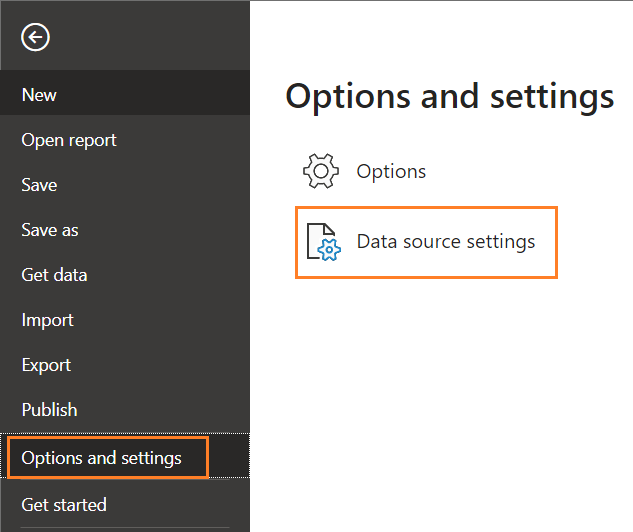 - Click on the File menu, select Options and settings , and select Data source settings .