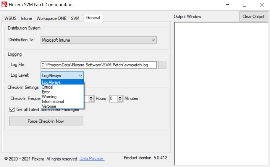 - You can edit the folder path to save the action logs of this Tool. By default, the folder path will be C:\ProgramData\Flexera Software\SVM Patch\svmpatch.log .