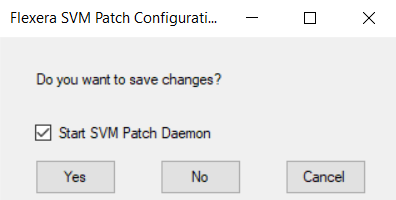 - To run the services, click close button. You will be prompted to enable Start SVM Patch Daemon in the closing window. Click Yes to restart the Patch Daemon for the change to take effect.