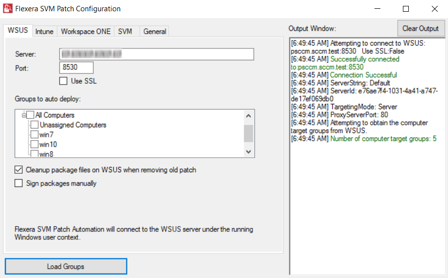 - In WSUS Connection tab, enter the WSUS server details and the port number, click Load Groups .