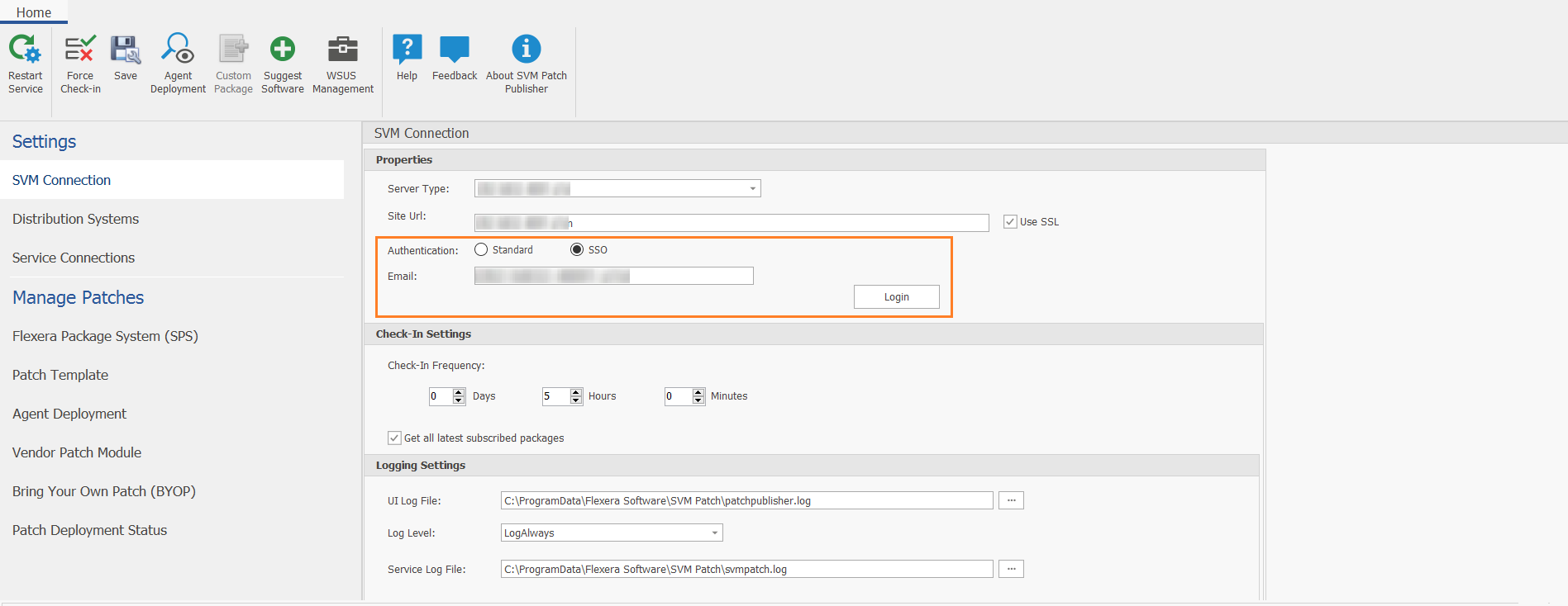 - In the SVM Patch Publisher > Settings menu, click SVM Connection in the left pane.