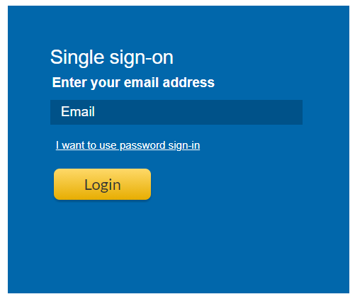 - The Single sign-on login page prompts for authentication with your single sign-on email address.