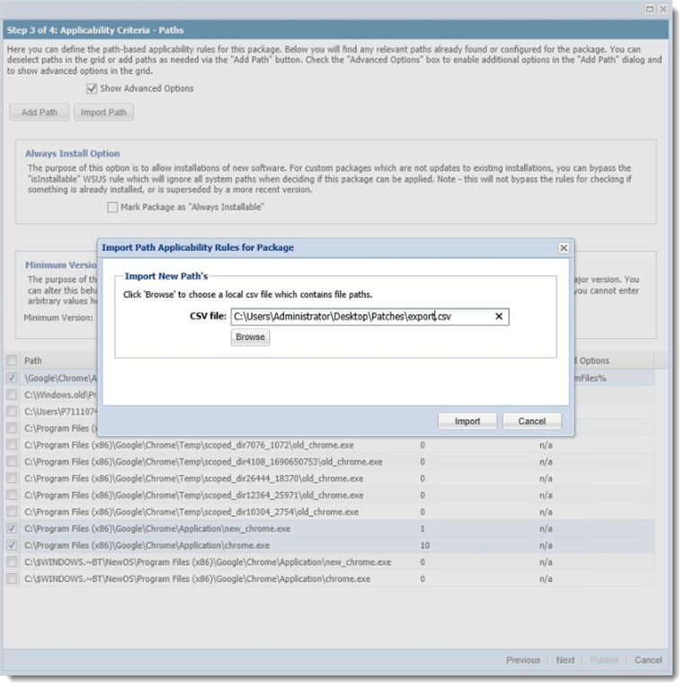 To help with situations where you wish to include specific file paths for scanning software, you can now import multiple file paths by providing a CSV file during Step 3 of the patch/template creation process.