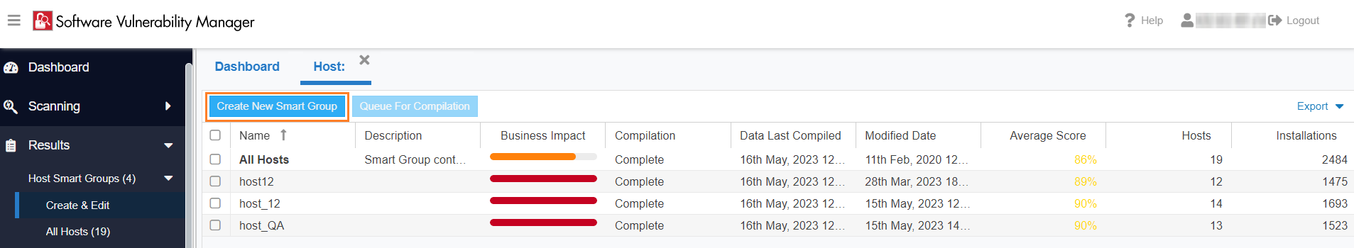 - A list of created Host Smart Groups appears. To create a new Smart Group, click Create New Smart Group link.