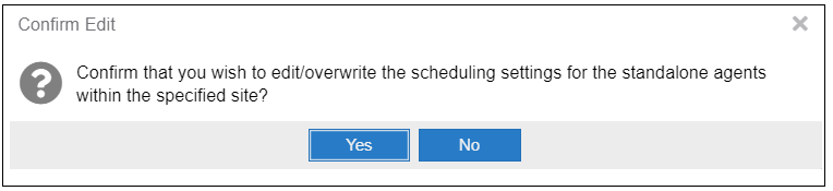 - Any edits to the scan schedule will come into effect only after the currently scheduled scan has completed. Each agent could potentially have a scan scheduled at different times. Therefore, any new scan configuration edit will affect the scan schedule at various times.